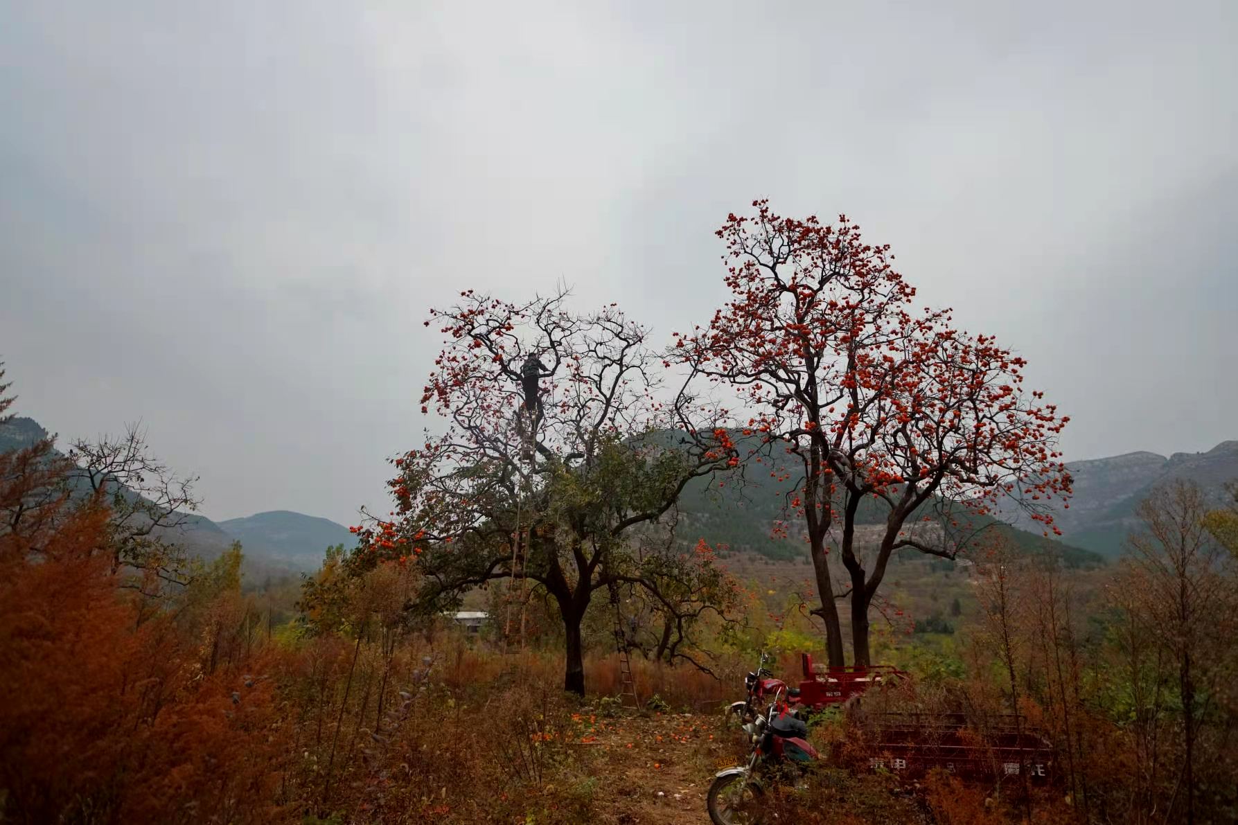 滿樹的(de)柿子就(jiu)紅了。